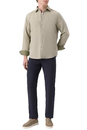 Сорочку с контрастной внутренней отделкой на воротнике кент и закругленных манжетах сшили из хлопкового поплина. Материал обработали по технологии easy-iron, поэтому модель Slim fit почти не мнется, а после стирки ее легко гладить.