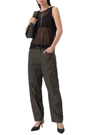 Брюки из очень эластичной замши облегают тело, словно легинсы. Вверху и внизу на лаконичной модели сформировали симметричные диагональные швы. Изделие прекрасно дополнит образ со свободным свитером или футболкой oversize.