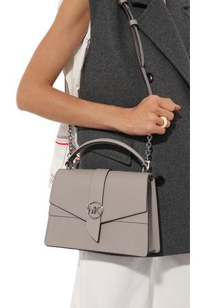 Сумку Empire с золотистым логотипом и одноименной эмблемой на пуллере молнии изготовили из зернистой и гладкой кожи. Аксессуар дополнили тремя карточными слотами внутри, внешним плоским карманом и съемным плечевым ремнем.