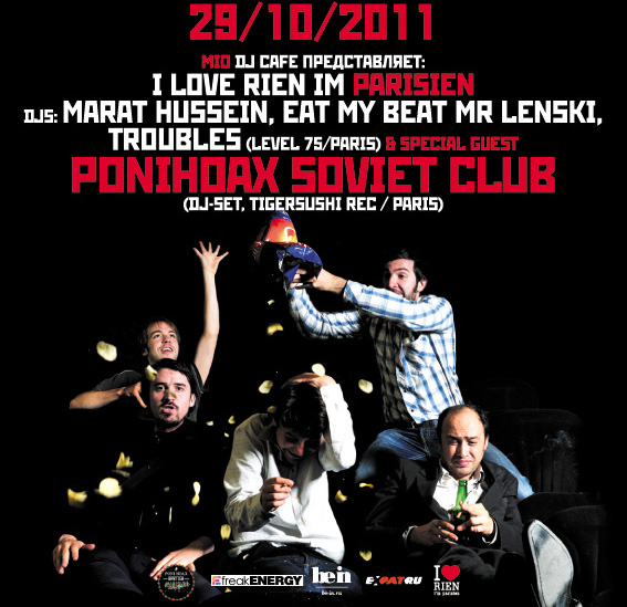 VMDR представляет очередную вечеринку серии "I Love Rien I’m Parisien" при участии Poni Hoax Soviet Club (DJ-set, Tigersushi Rec / Paris), а также DJ Troubles (Level 75, Paris), Marat Hussein, Eat My Beat Mr Lenski