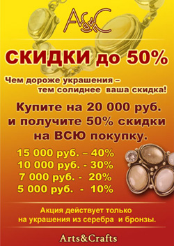 - скидки до 50% на украшения из бронзы и серебра 925 пробы