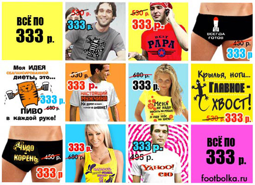 Интернет-магазин footbolka.ru предлагает фирменные качественные футболки с надписями и рисунками всего за 333 рубля
